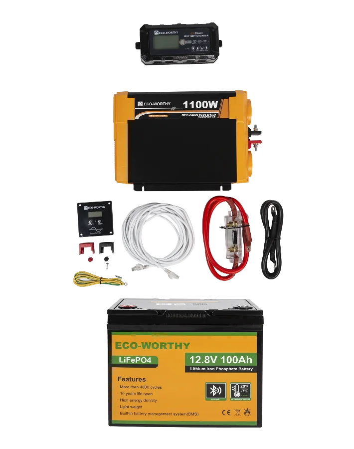 Універсальний автономний енергетичний комплект ECO-WORTHY 1100W + LiFePO₄ 12.8V 100Ah