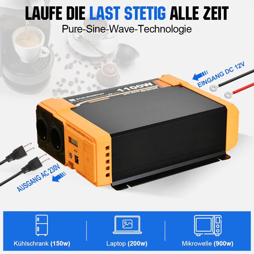 | Size: 13,5x9,8x4,1 Zoll | Output Continuous Watts: 1100W+18W USB |