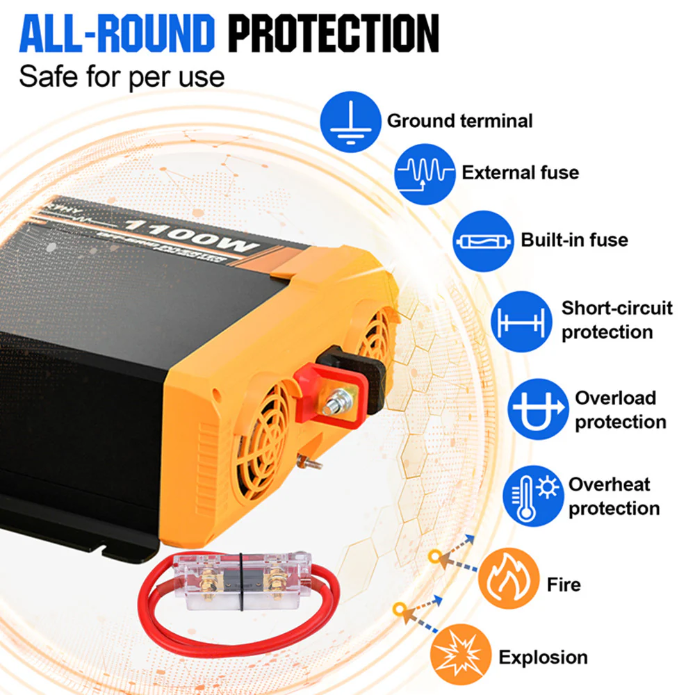 - Інвертор із чистою синусоїдою забезпечує кращий захист та запобігає інтерференції.