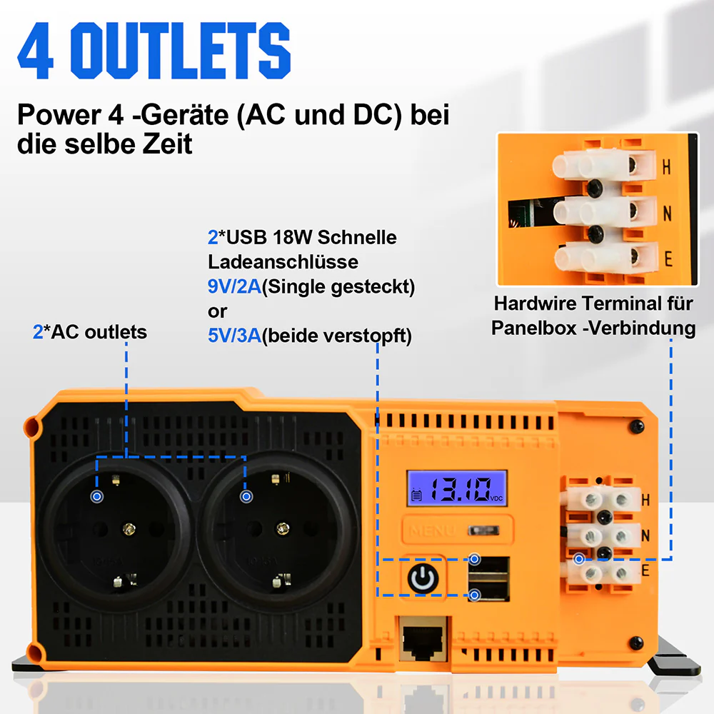 - Інвертор із чистою синусоїдою забезпечує кращий захист та запобігає інтерференції.