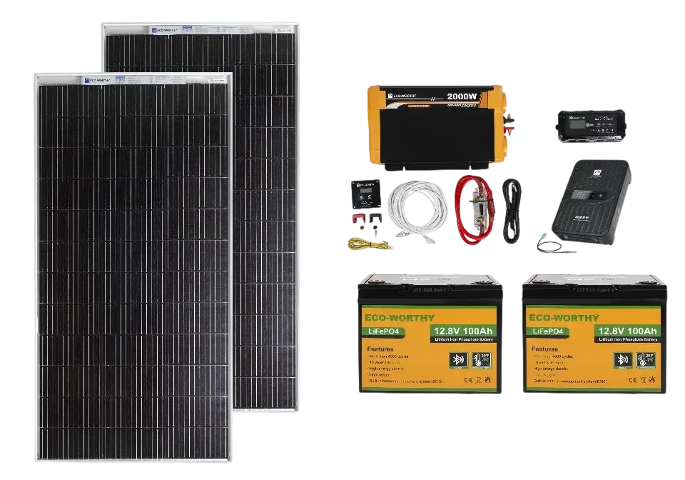 Универсальный автономный энергетический комплект ECO-WORTHY 2000W + 2×LiFePO₄ 12.8V 100Ah + 2×195W + MPPT 40A